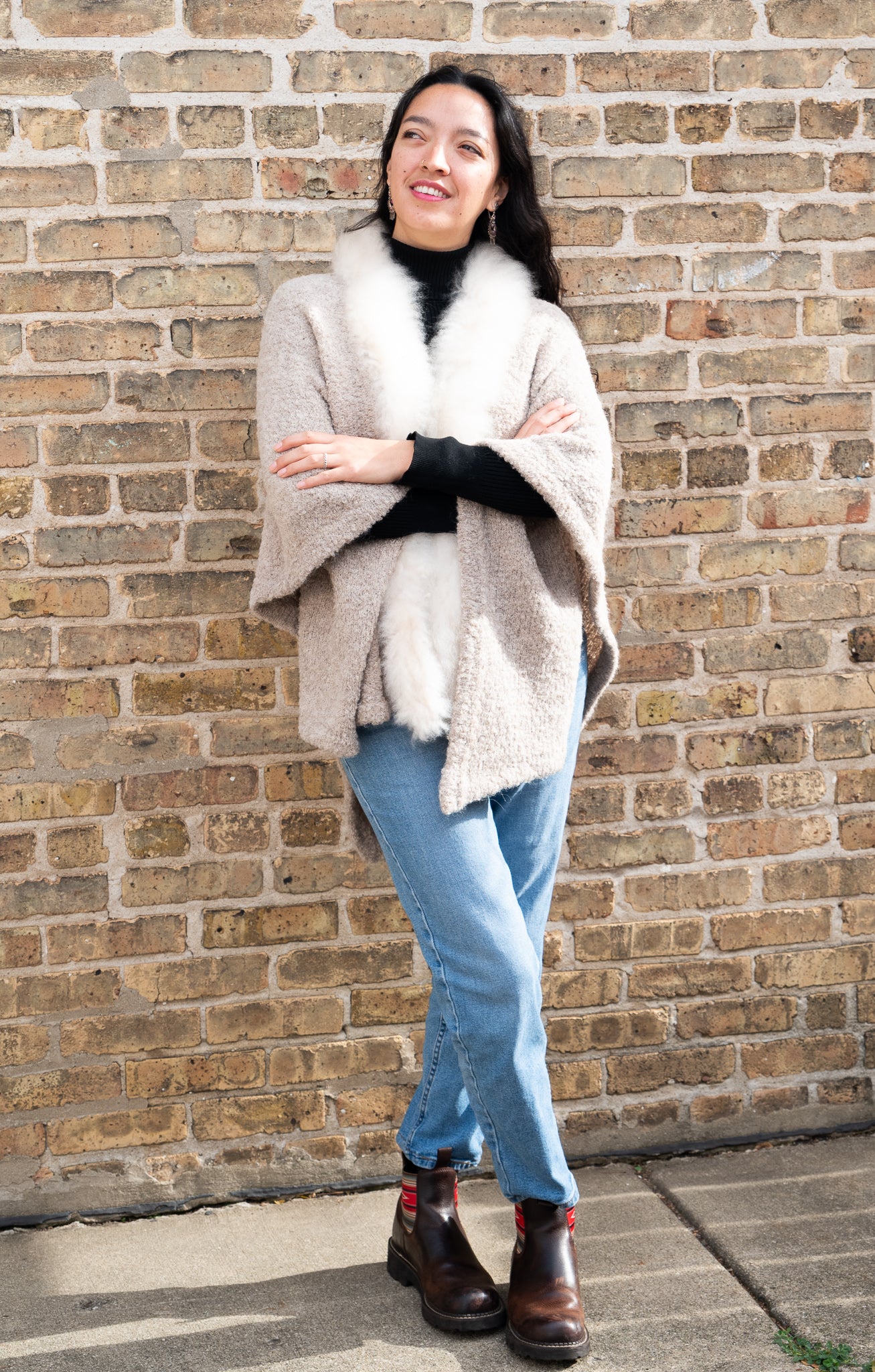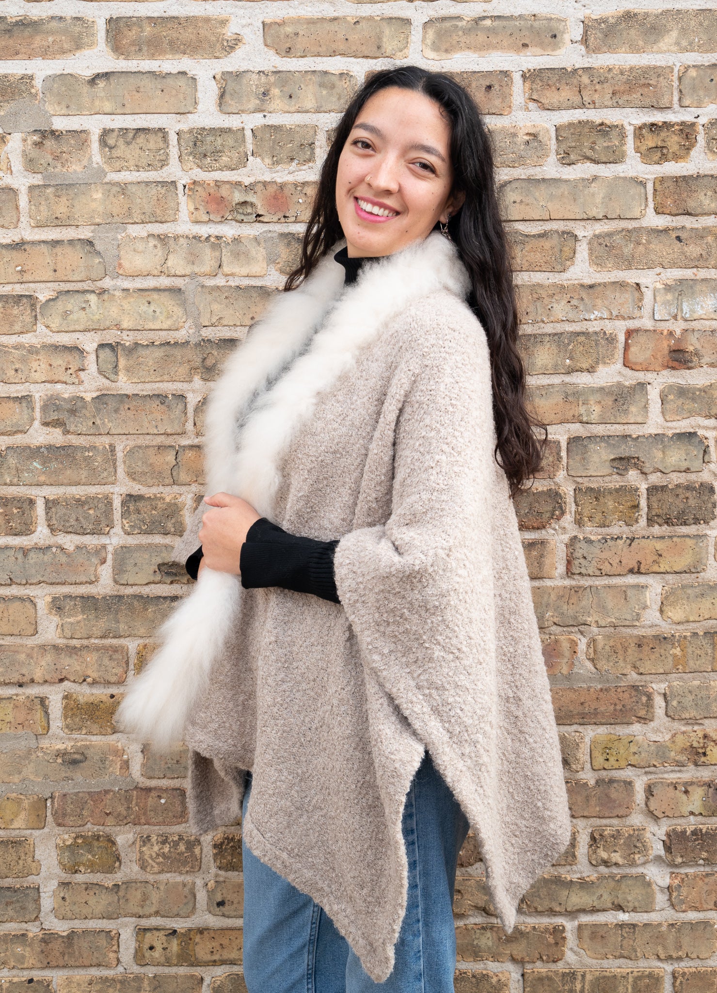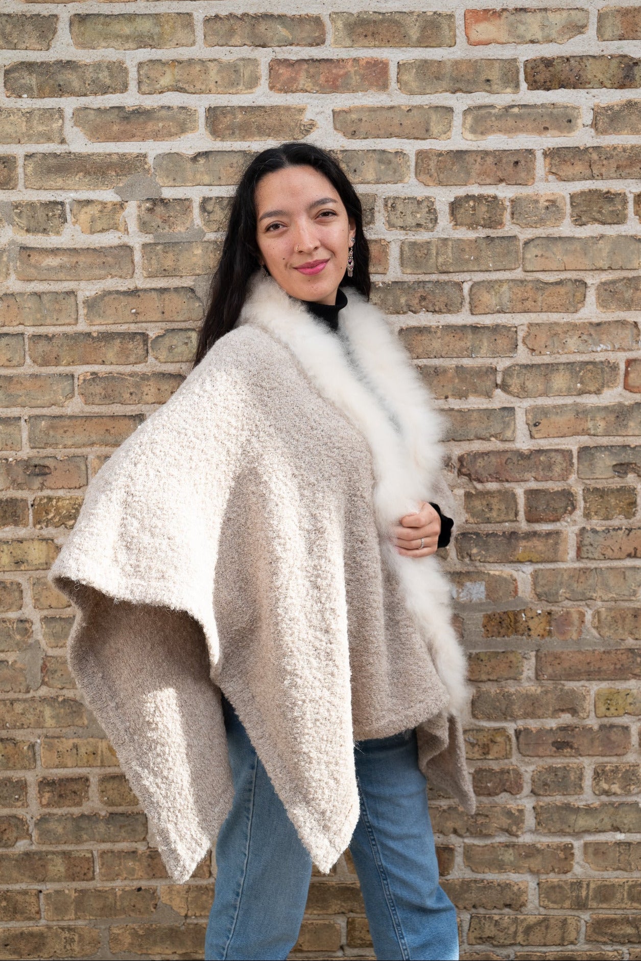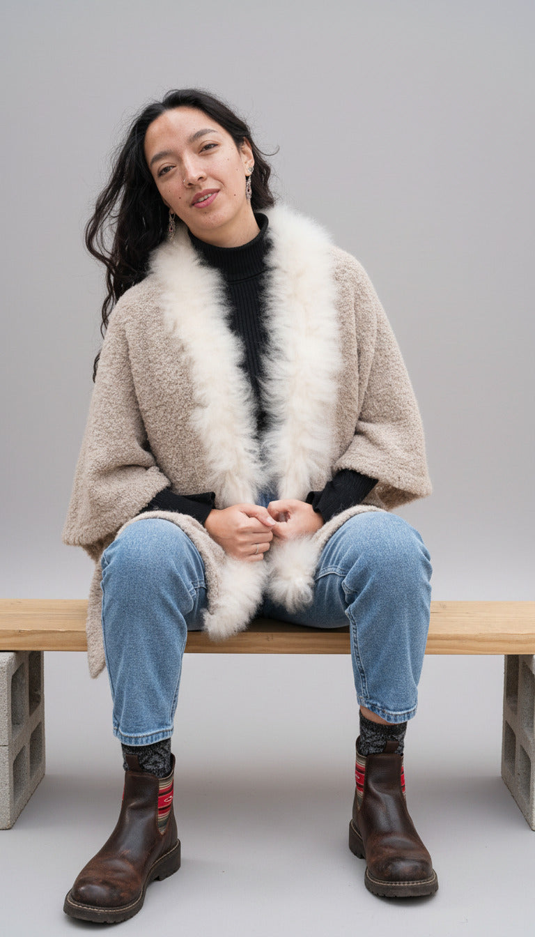 Alpaca cape with 100% Alpaca fur decoration