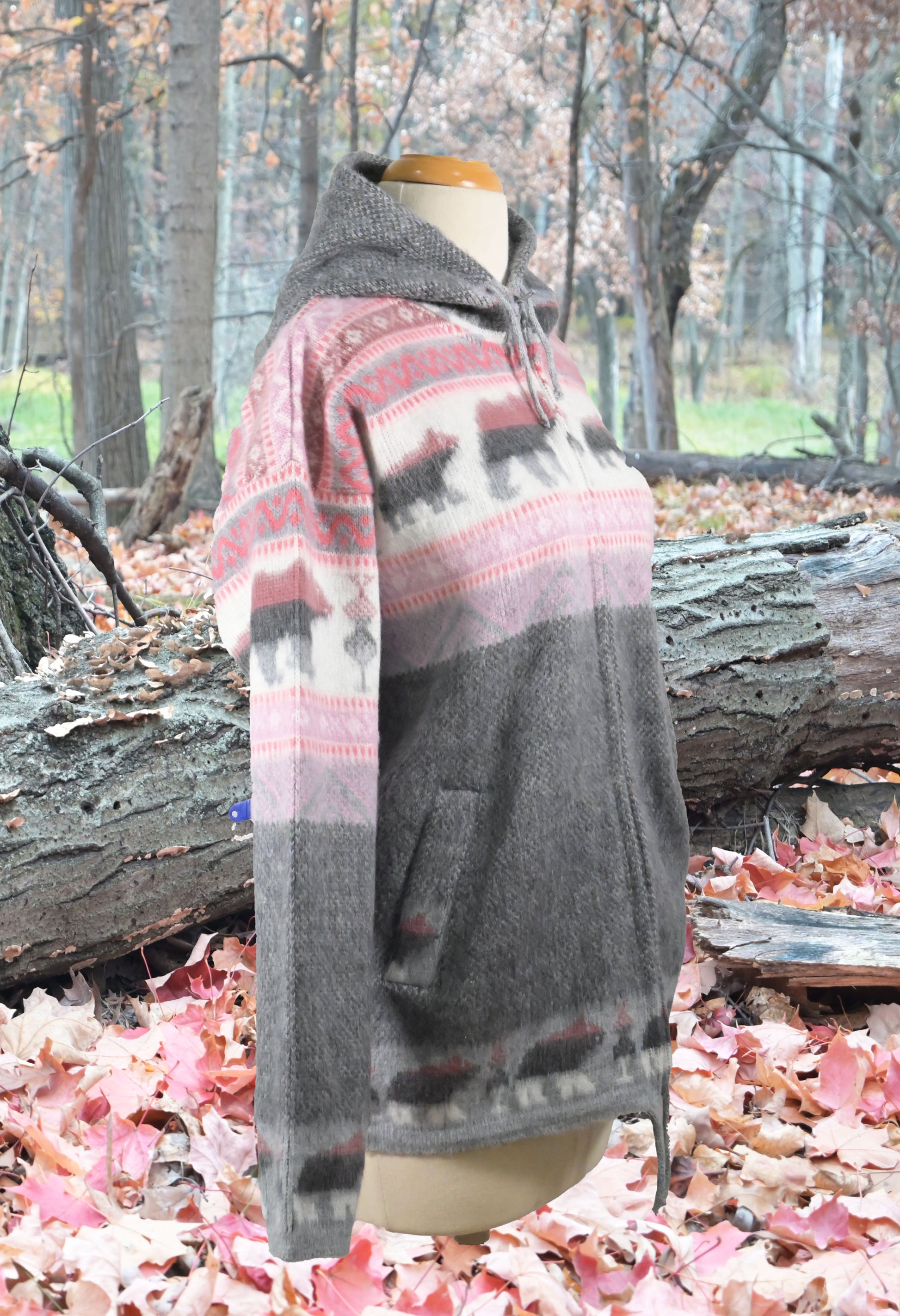From the chilly mountains of Ecuador comes these spectacularly cozy alpaca/acrylic blended hoodies. Made by indigenous artisans from the Kichwa Nation. This sport blend is designed for better washing and drying experience, as well it is a tightly woven knit so as to keep out wind and is even slightly water resistant. Ultra warm, Heavyweight, thick and cozy. Makes a great fall and beginning of winter jacket. Can even be worn the entire winter as an overcoat when you layer underneath. Great quality and can last for years!