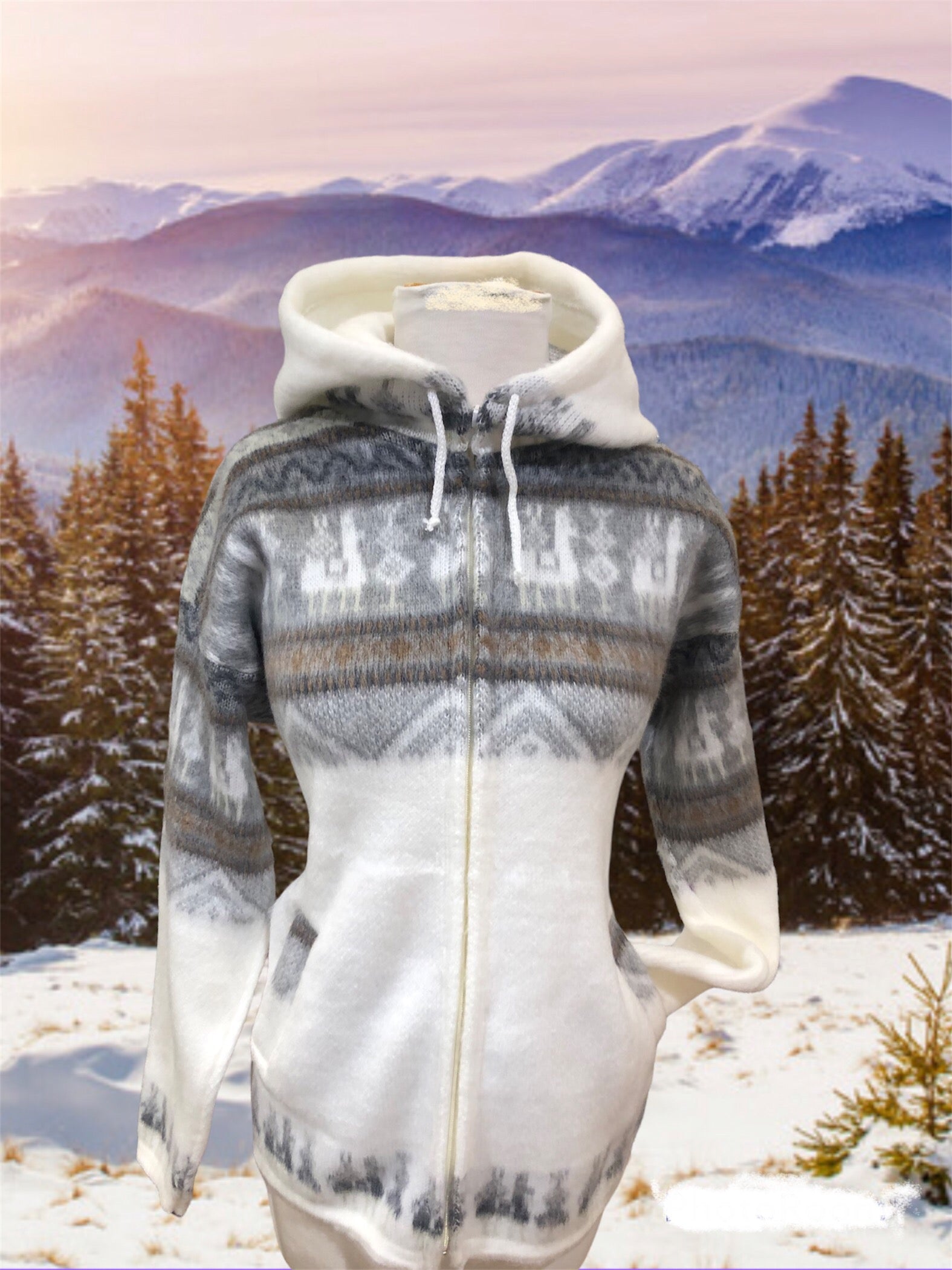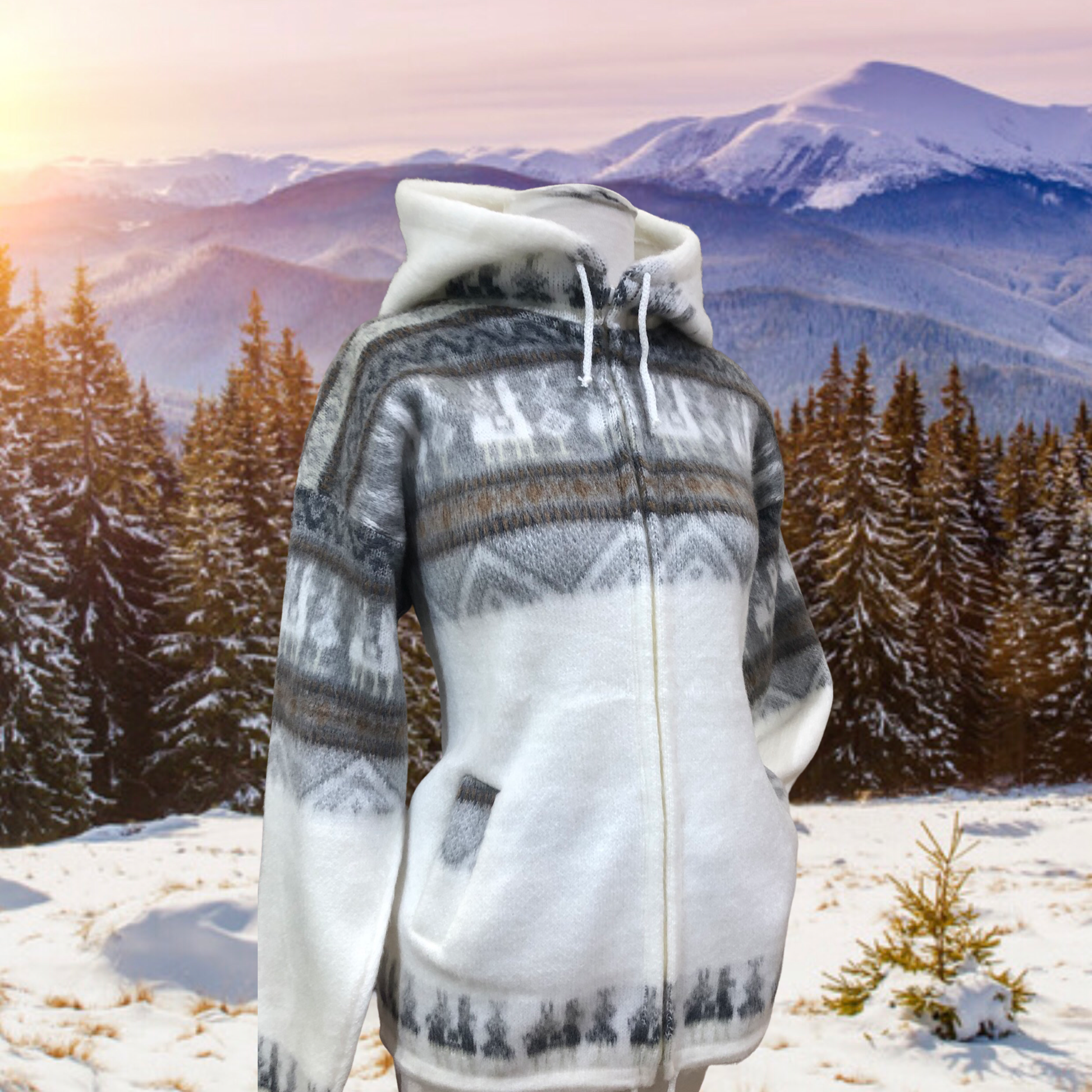 From the chilly Andean mountains of Ecuador comes these spectacularly cozy alpaca/acrylic blended hoodies. Made by indigenous artesans from the Kichwa nation. This sport blend is designed for better washing and drying experience, as well it is a tightly woven knit so as to keep out the wind and is even slightly water resistant. Ultra warm, heavy weight, thick and cozy. Makes a great fall and beginning of winter jacket. Can even be worn throughout the entire winter as an overcoat when you layer underneath. Great quality and can last for years!