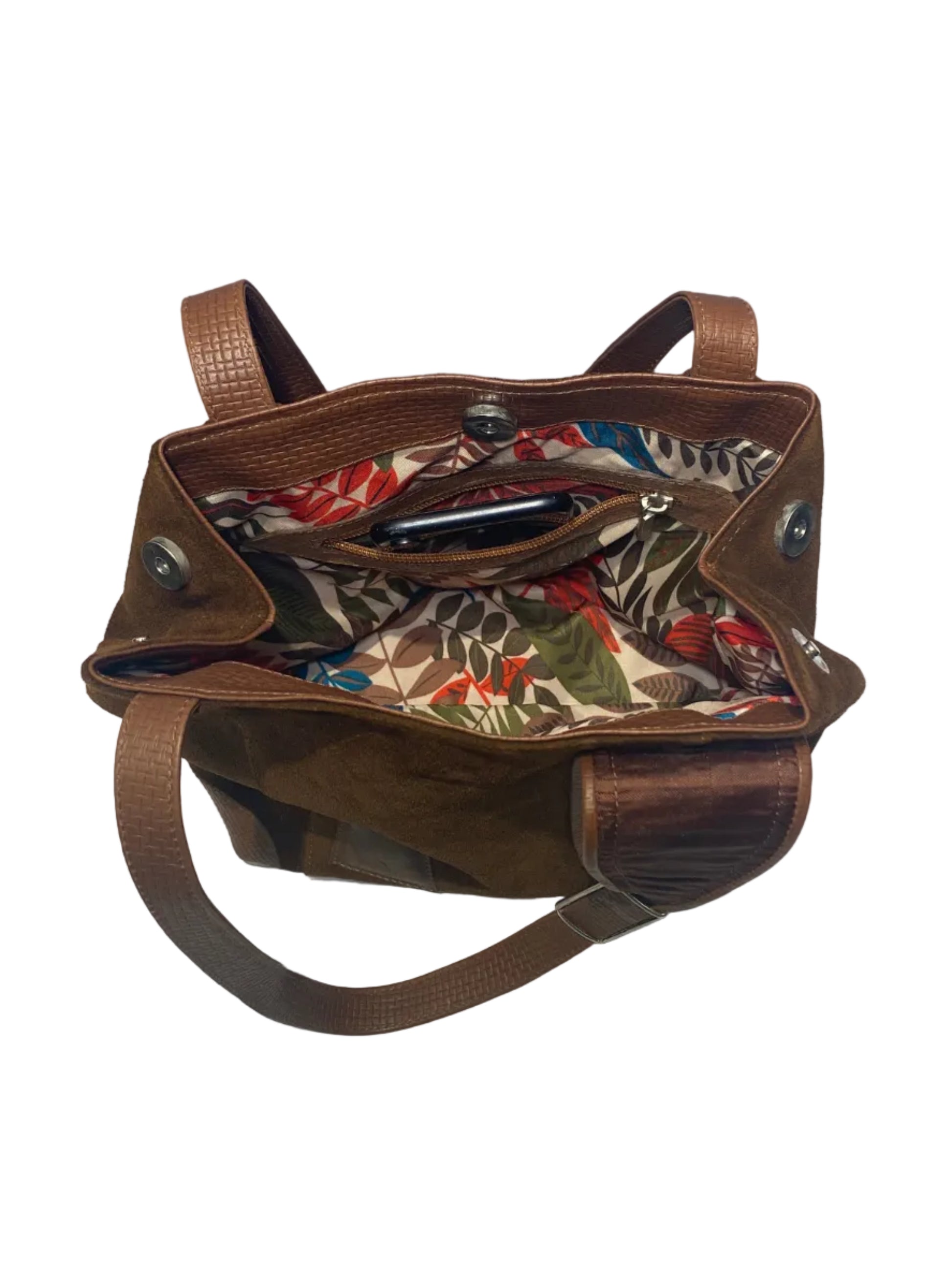 2 ways to close, snap on sides and middle, packets inside