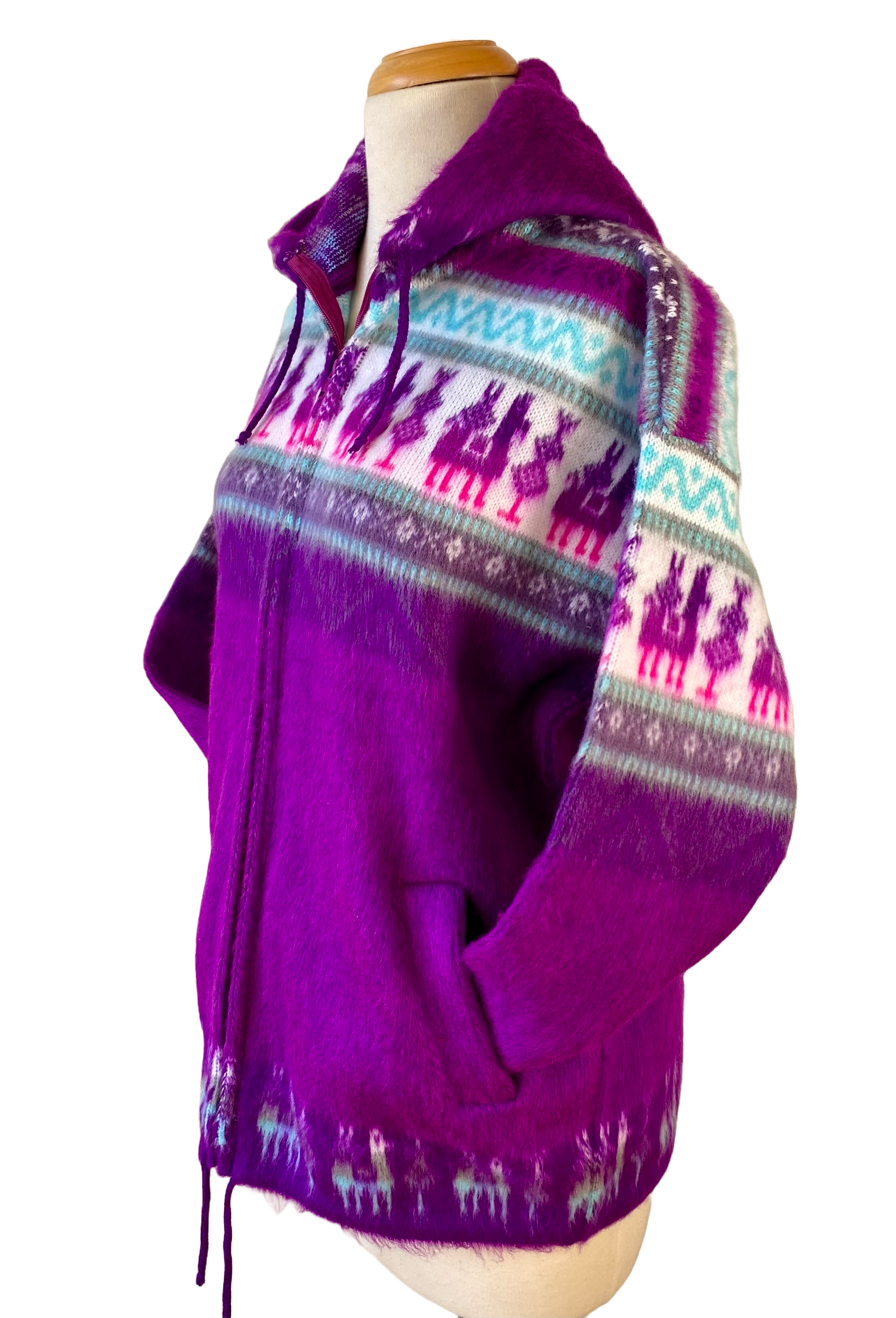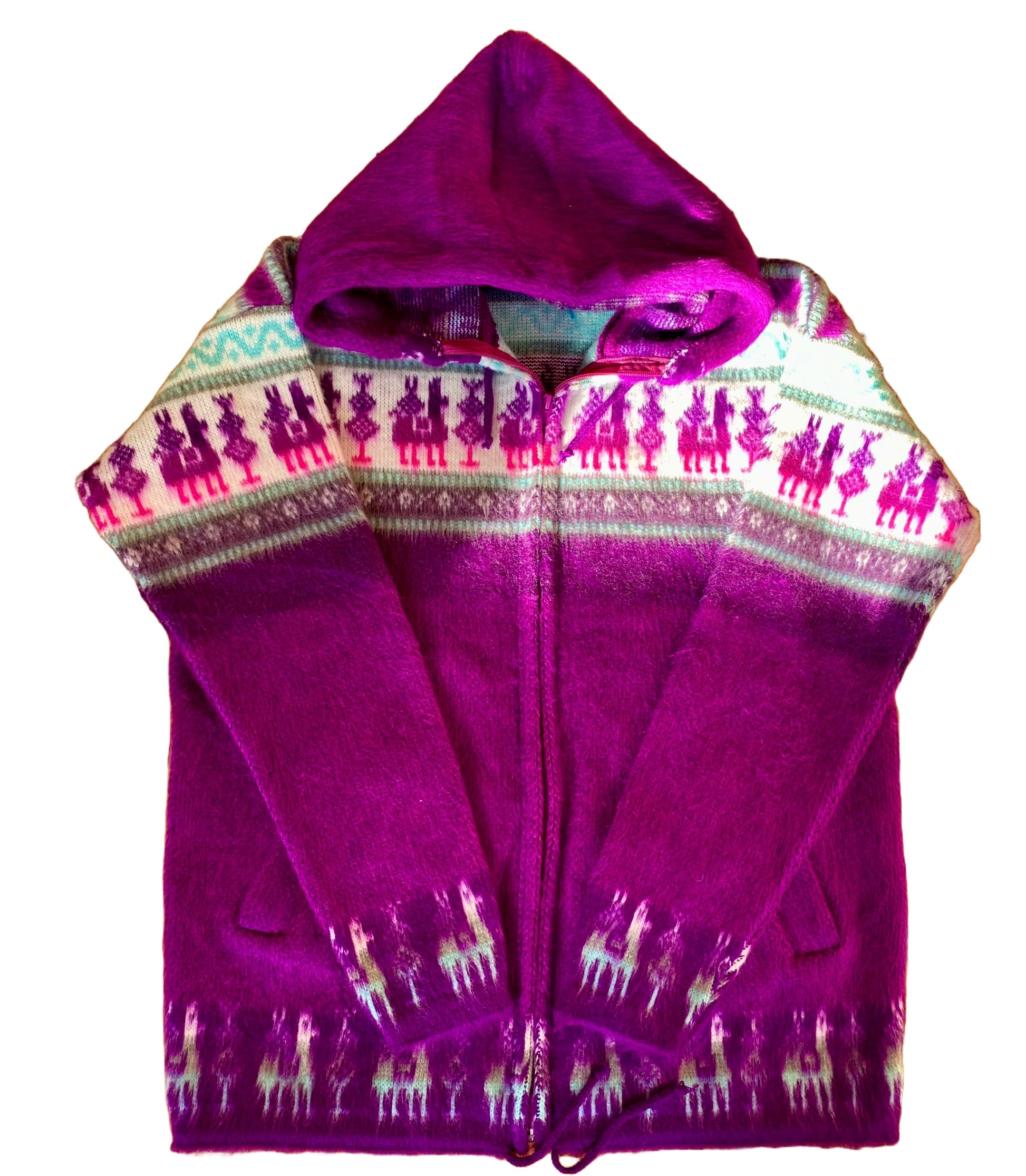 From the chilly mountains of Ecuador comes these spectacularly cozy alpaca/acrylic blended hoodies. Made by indigenous artisans from the Kichwa Nation. This sport blend is designed for better washing and drying experience, as well it is a tightly woven knit so as to keep out wind and is even slightly water resistant. Ultra warm, Heavyweight, thick and cozy. Makes a great fall and beginning of winter jacket. Can even be worn the entire winter as an overcoat when you layer underneath. Great quality and can last for years!