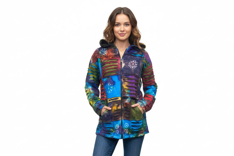 Tie dye patch work heavy jacket
