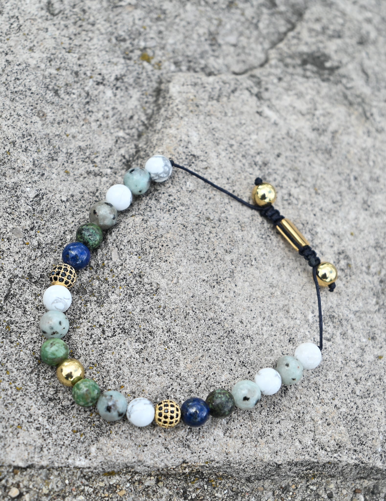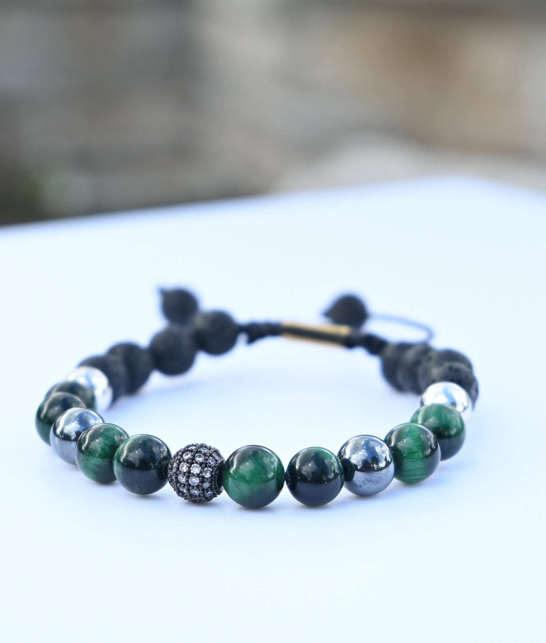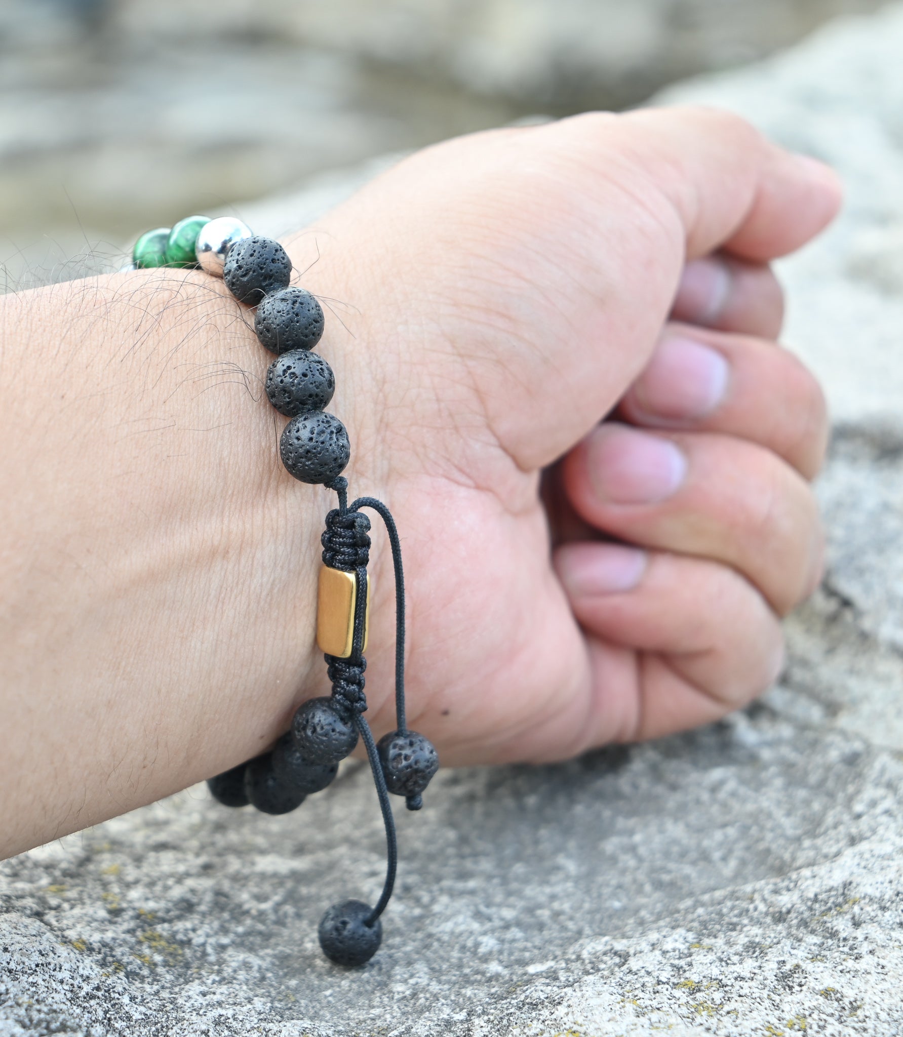 Green agate, and lava rock stone bracelet with adjustable cord, inner length is from 6 inches to 12 inches. Suitable size lava rock bracelet.