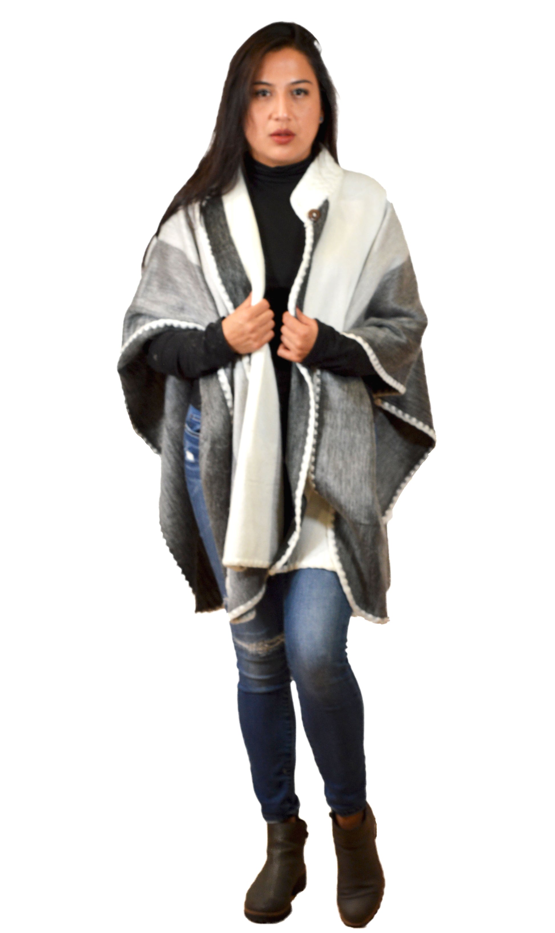 Neutral Tone Alpaca Poncho with hand crochet collar
