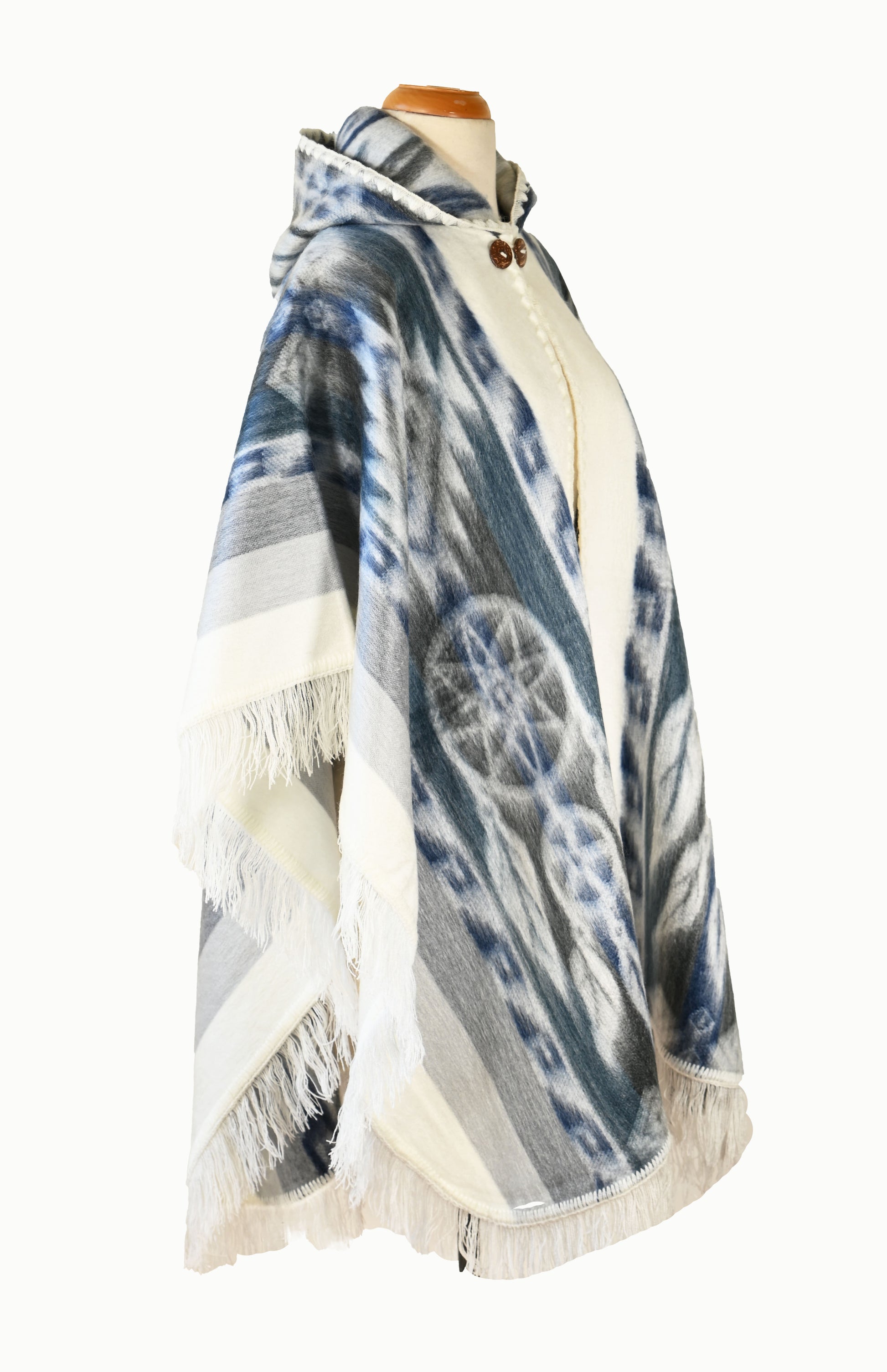 This alpaca poncho combines refined simplicity with functional design. Woven from alpaca and cotton, it features a sophisticated palette of neutral tones that complement any wardrobe. The generous drape offers effortless layering while the natural fiber provides exceptional temperature regulation and softness against the skin. Alpaca's hypoallergenic qualities make it suitable for sensitive skin, while its durability ensures lasting wear. Perfect for transitional seasons or as an elegant layering piece year-round.